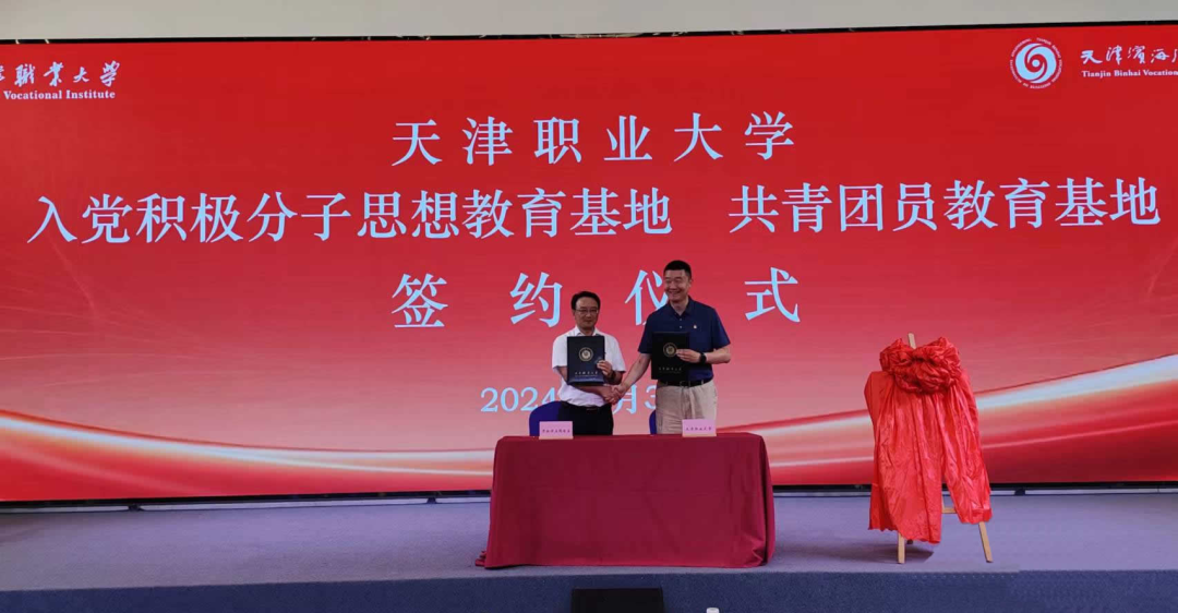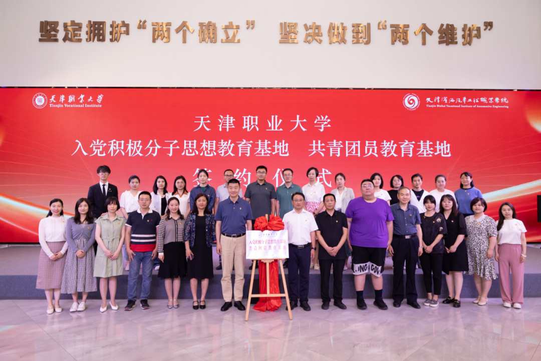 为深入学习贯彻党的二十大精神和习近平总书记视察天津重要讲话精神,进一步做好入党积极分子、共青团员的思想教育工作,切实提高党员发展质量,着力培育青年人才,5月31日下午,beat365官网在天津市学校思想政治理论课主题教室举办了入党积极分子思想教育基地、共青团员教育基地签约仪式。beat365中文唯一官网党委副书记李旭、天津滨海汽车工程职业学院党委书记王雅静以及党委副书记、纪委书记管宝云出席,两校相关职能部门负责人、干部和beat365官网专职组织员、优秀团员学生代表参加。