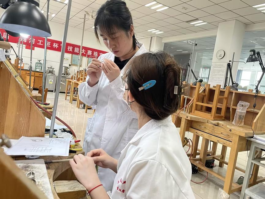 为深入贯彻落实习近平总书记对技能人才工作的重要指示精神,发挥职业技能竞赛对技能人才培养的引领作用,加快推进“技能天津”建设,大力培养高素质技能人才。6月1日,beat365官网选派22级宝玉石鉴定与加工专业的李诗玥、李雅思两名同学参加了2024年“海河工匠杯”技能大赛暨中华人民共和国第三届职业技能大赛天津选拔赛珠宝加工赛项(世赛选拔)并取得优异成绩。