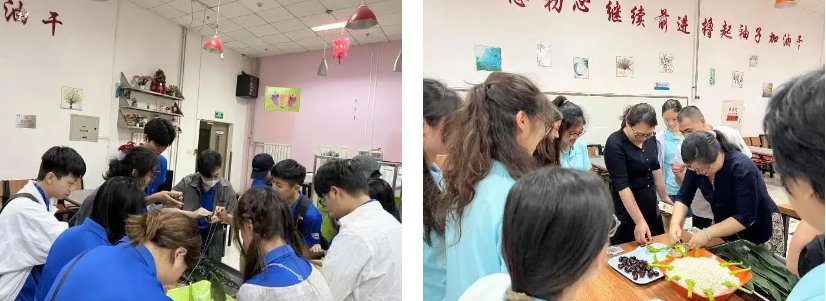 “动力启航—天津实习篇”香港实习团及“港津新创建”香港青年实习团共计75人,在旅游管理学院实训教师的带领指导下,现场体验包粽子。香港师生亲手将一片片嫩绿的粽叶包裹起粒粒晶莹剔透的糯米粒、颗颗香甜的红枣,大家在欢声笑语中交流体会。