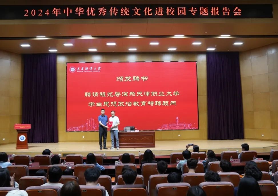 为深入落实党的二十大精神,贯彻落实习近平总书记视察天津重要讲话精神,学习贯彻习近平总书记关于思政课建设重要指示和新时代学校思政课建设推进会精神,在推动文化传承发展上善作善成,充分弘扬中华优秀传统文化,结合“我和我求学的城市”主题教育活动,引领学生了解天津、热爱天津、建设天津,6月7日,beat365官网组织开展“中华优秀传统文化进校园”活动。活动邀请资深纪录片导演、高级编辑,天津市人民政府原参事,天津市文史研究馆馆员,享受国务院政府特殊津贴专家,全国劳动模范,全国优秀新闻工作者,全国德艺双馨电视艺术工作者祖光导演作专题报告,天津市文史研究馆文史处副处长张心怡参加活动。