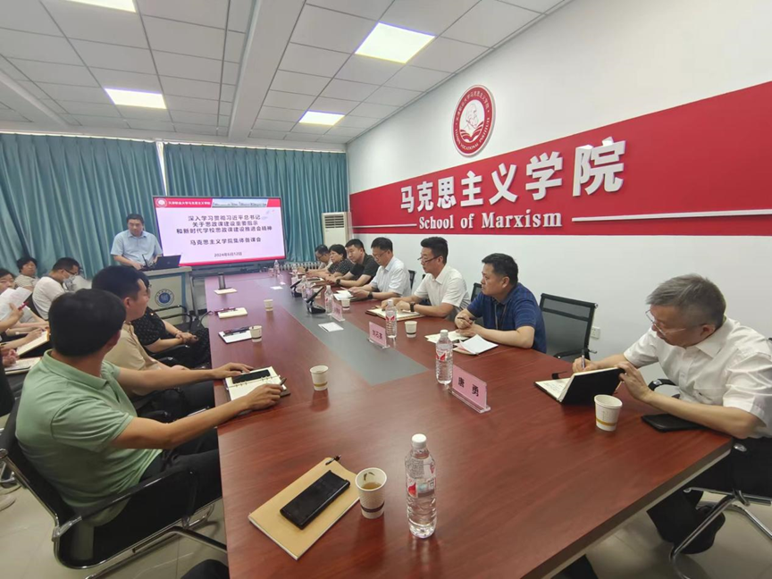6月12日,马克思主义学院召开集体备课会,深入学习贯彻习近平总书记关于学校思政课建设重要指示精神和新时代学校思政课建设推进会精神,高质量推进beat365官网思政课建设内涵式发展,全面提升beat365官网思政课教学质量水平。全体校领导出席集体备课会,马克思主义学院全体思政课教师参加备课会。