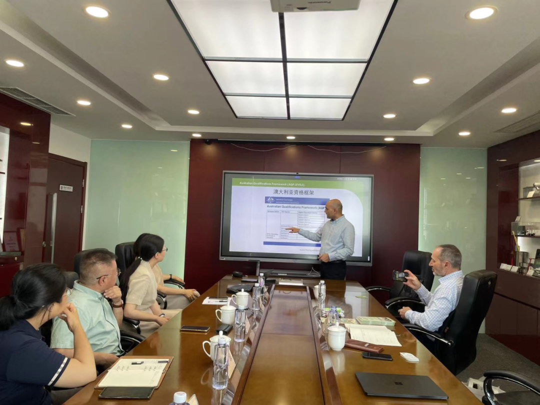 座谈中,首先由Junaid经理介绍澳大利亚Auctus培训学院的发展历史和当前运营情况,并希望两校进一步对接发展需求,加强合作。随后,公共管理学院副院长就学院师资队伍、专业建设、人才培养等情况进行介绍,并表示未来希望在师生互访、师资培训、人文交流、实训基地建立等方面建立交流合作,促进两校事业共同发展。座谈结束后,公共管理学院院长邀请Sam总裁一行到我院参观访问。