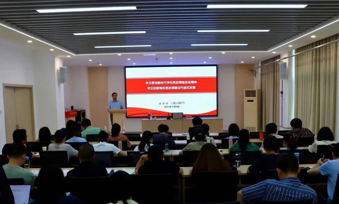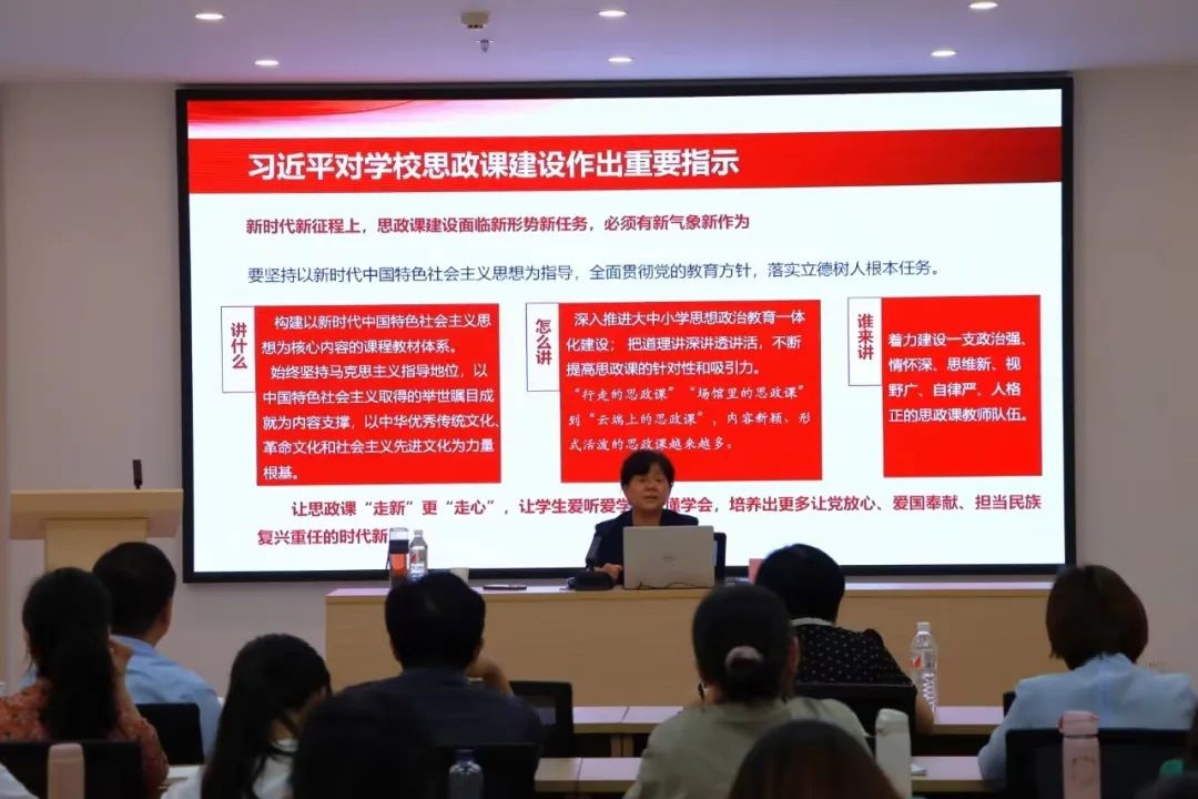 为深入学习贯彻习近平总书记对学校思政课建设的重要指示精神,进一步增强讲好思政课的责任感紧迫感,立足新形势新任务推动思政课建设内涵式发展,6月26日,马克思主义学院特邀教育部全国高校思政课教指委高职高专分教指委副主任委员张泽玲教授作题为《学习贯彻新时代学校思政课推进会精神 守正创新推动思政课建设内涵式发展》专题讲座,解读新时代学校思政课建设推进会精神。马克思主义学院党总支书记、院长和全体思政课教师聆听了讲座。