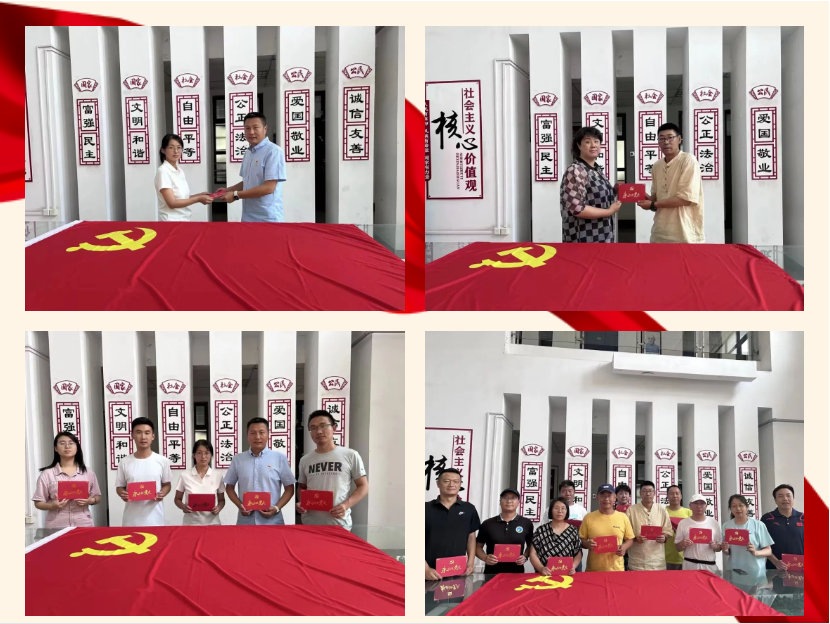 随后,党支部书记向党员赠送政治生日贺卡,集体重温入党誓词。