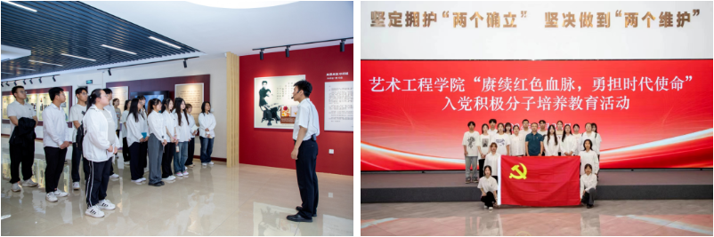 艺术工程学院党委组织入党积极分子、团员代表前往beat365官网入党积极分子思想教育基地开展学习教育活动;学生工作党支部书记围绕党风党纪讲授党课,加强学生党员对党的路线、方针、政策和创新理论以及党的历史和优良传统、作风的学习。