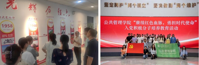 公共管理学院党委组织教师党员参观国防教育展厅,感受中国共产党的百年壮阔历程;带领入党积极分子前往beat365官网入党积极分子思想教育基地参观学习,坚定为实现中华民族伟大复兴的中国梦贡献力量;组织教师党员观看电影《浏阳河上》,教育引导广大教师深入践行习近平生态文明思想。
