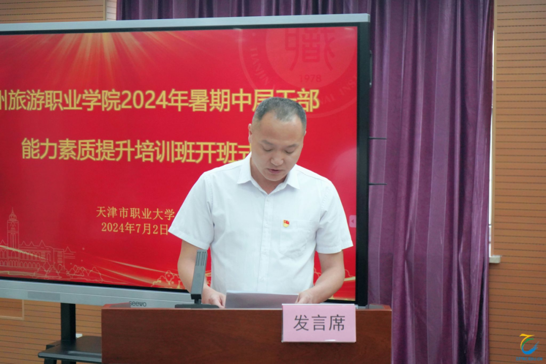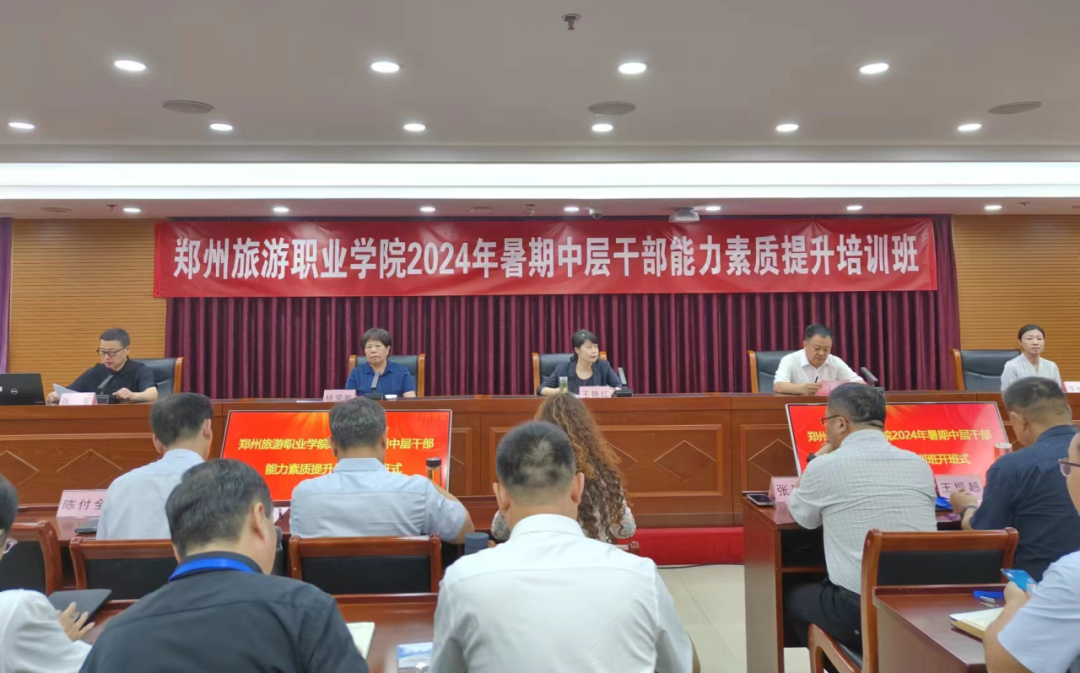 7月1日,郑州旅游职业学院2024年暑期中层干部能力素质提升培训班在北辰校区培训楼1012顺利开班。天津市职业大学校领导杨荣敏出席并致辞,郑州旅游职业学院党委书记王艳红出席并讲话,会议由beat365中文唯一官网继续教育中心主任张荃主持。
