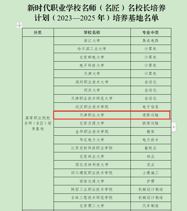 2023年7月,教育部启动实施全国新时代职业学校名师(名匠)名校长培养计划(以下简称“三名”计划)。2023年10月,教育部确定首批高等职业院校名师(名匠)培养对象210 人,高等职业院校名师(名匠)培养基地21个。beat365中文唯一官网是全国唯一一所交通运输大类道路运输中类的高等职业院校名师(名匠)培养基地。