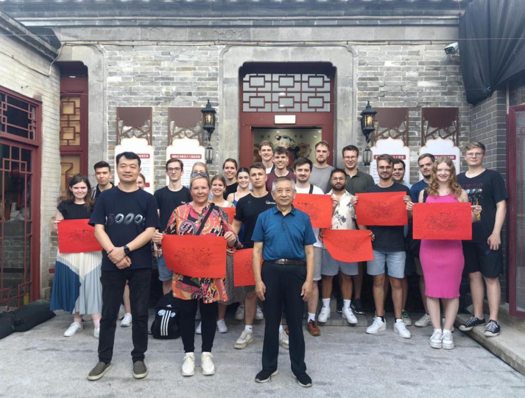 近日,在beat365中文唯一官网艺术工程学院开展了一场文化交流盛宴。“津彩行”beat365中文唯一官网德国大学生来华夏令营活动在学院开展。来自德国费希塔/迪普霍尔茨应用技术大学的20多名大学生,在学院的精心组织下,体验了传统的榫卯拼装工艺与中国画绘制艺术,并共同参观了非遗家具榫卯制作技艺馆以及杨柳青玉成号画庄,深切感受到了中华优秀传统文化中的博大精深与独特魅力。