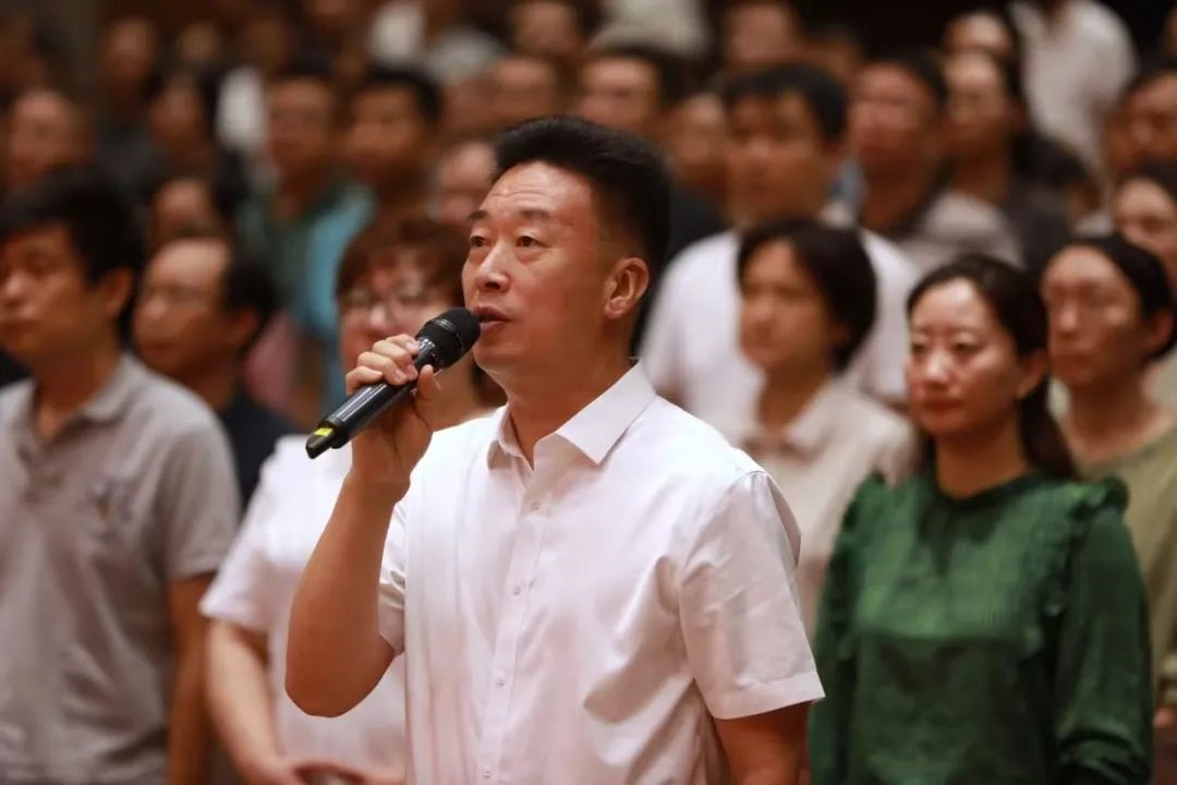吴宗保校长带领全体与会教师重温人民教师誓词