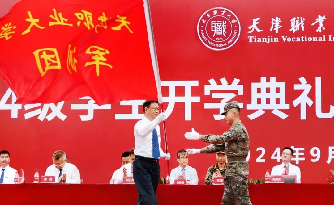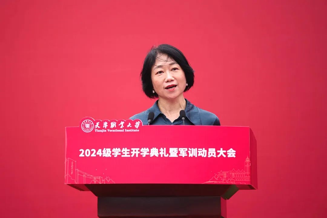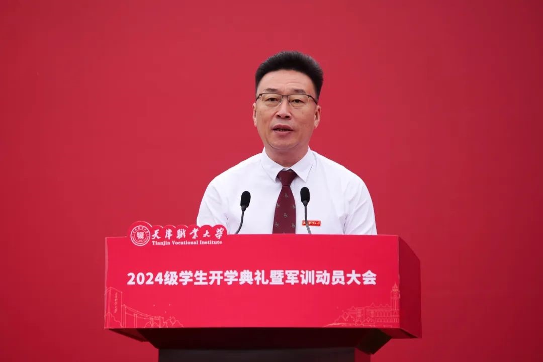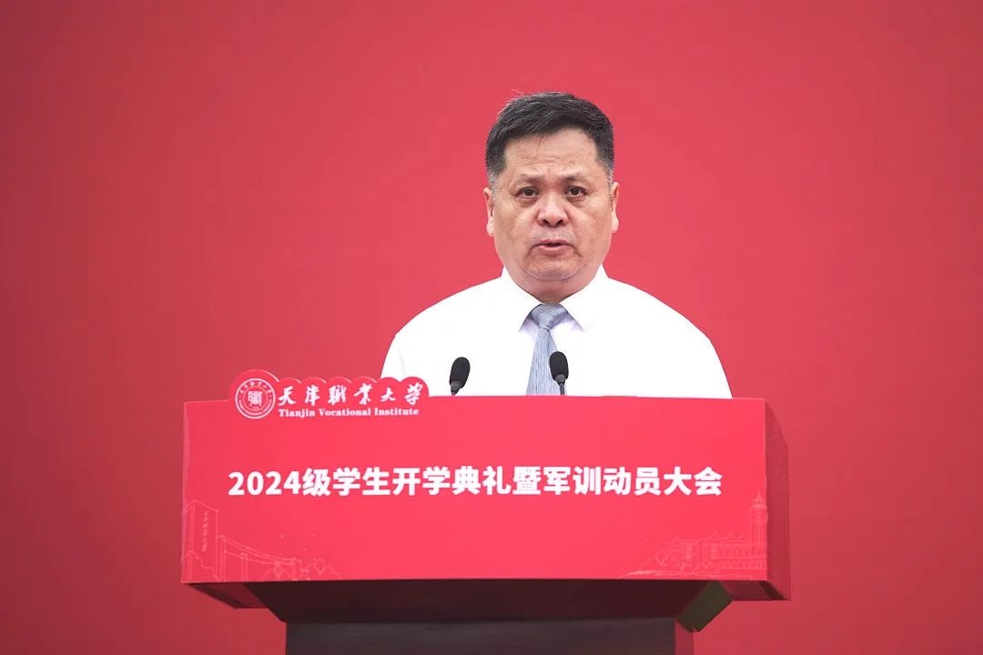 校党委副书记、校长吴宗保老师代表全校师生员工,向全体新生表示诚挚的祝贺和热烈的欢迎。他用“如何做一名新天职人”,引导同学们去直面大学生涯,用智慧去感悟,用行动去探索,用毅力去坚守,用成绩去守护“天职人”的自豪和骄傲,希望同学们明确成才目标、掌握高强本领、锤炼坚强意志,踔厉奋发,勇毅前行,用青春热血投身技能报国的伟大实践。
