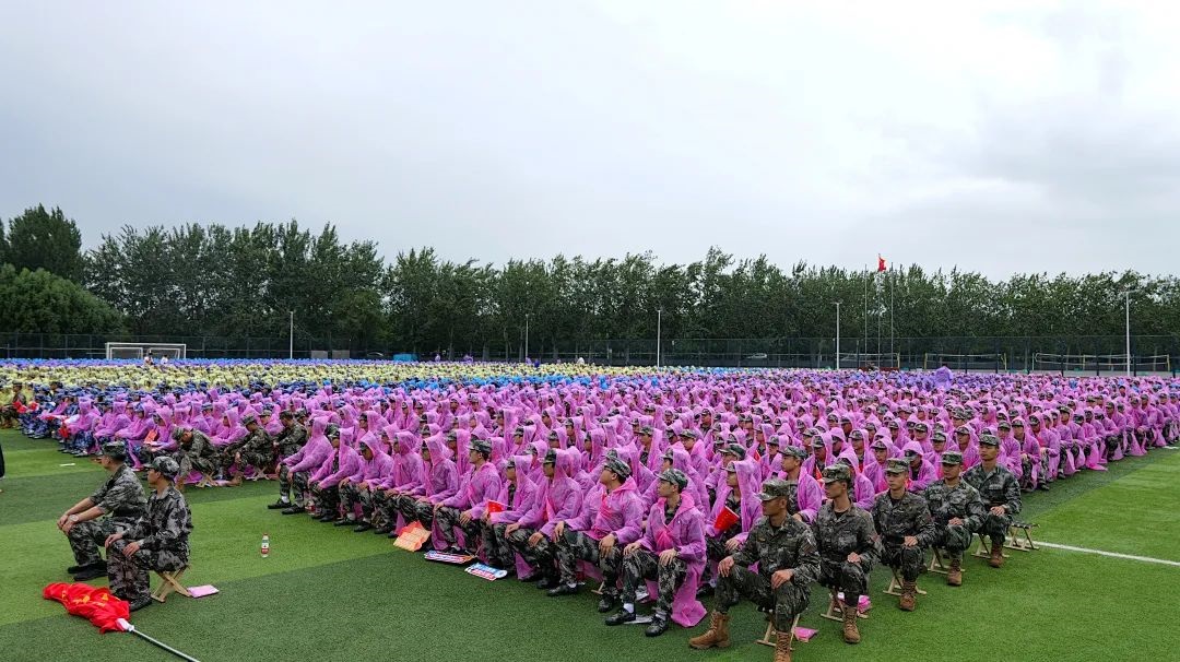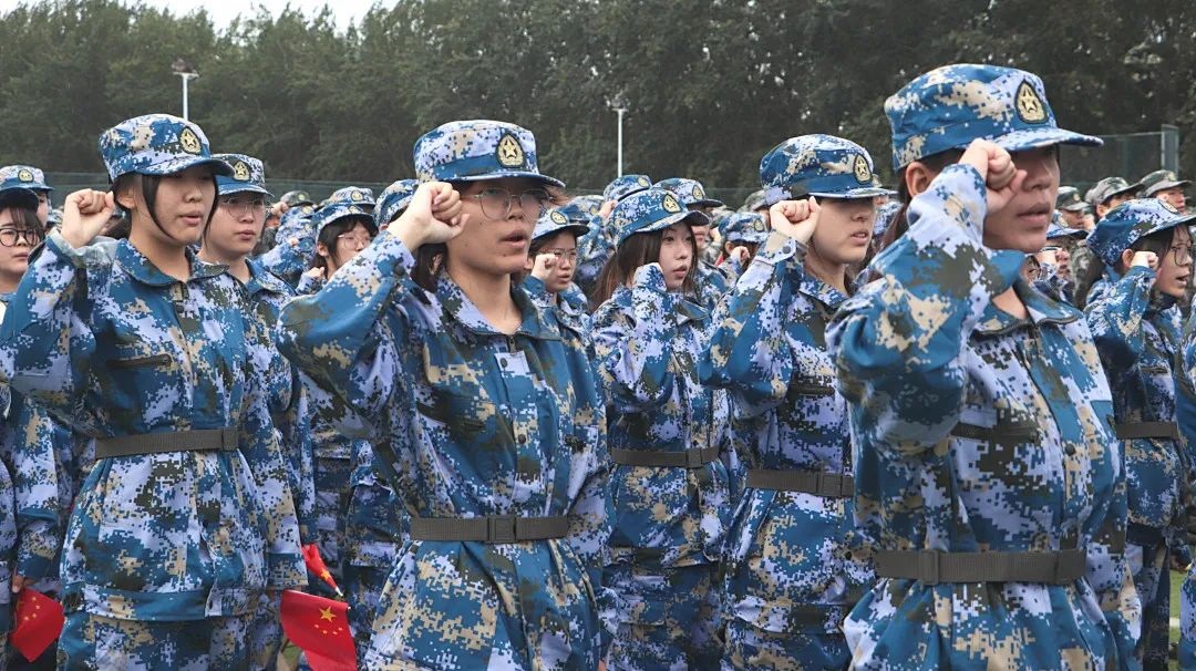 承训单位教官代表崔云昊战士就即将开始的军训鼓励新生要将国防之重牢记于心,要敢拼敢闯、善作善成,要面对挑战永不言弃,与教官们共同努力,克服困难,为大学生涯的开端交上一份满意的答卷!