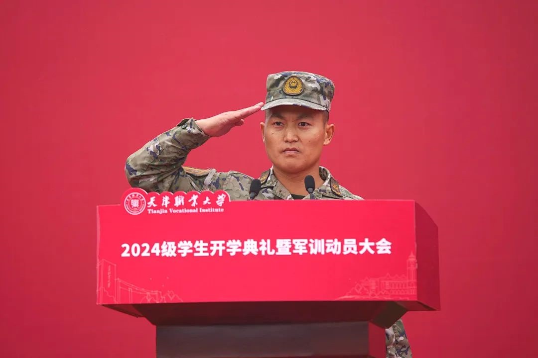 校党委书记夏静波,校党委副书记、校长吴宗保,校党委副书记李旭,副校长刘石英、杨荣敏,校纪委书记唐勇,武警第一机动总队某支队大队长贾建明中校出席典礼,承训教官,学工部、教务处、马克思主义学院、基础课部、体育部及各专业学院负责同志,各专业学院辅导员、教师代表及2024级全体学生参加了典礼。典礼由校党委副书记李旭主持。