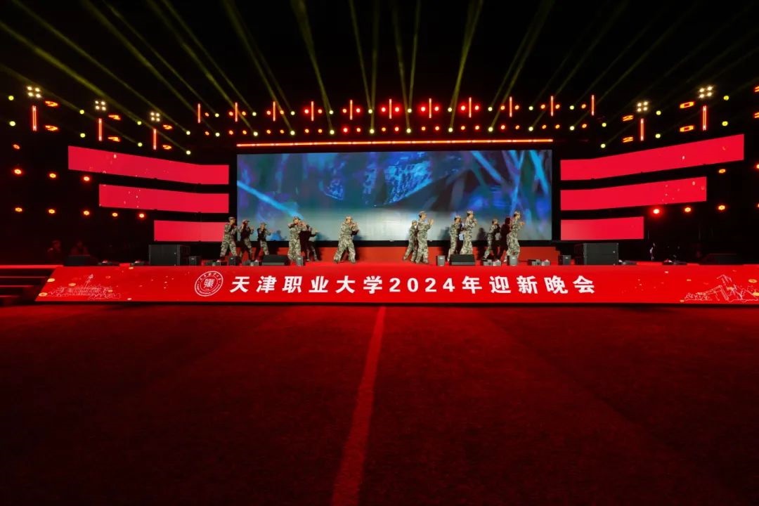 在缤纷绚丽的灯光秀之后,晚会在舞蹈《奔跑的青春》中拉开帷幕,热情洋溢、昂扬向上的动作,充分展现了天职青年秉承“育德育能 力实力新”校训精神、敢为人先的勇气和决心。青春是晨曦初露的阳光,青春是夜空中闪亮的星辰。青年一代朝气蓬勃、富有生机,是中华民族走向复兴的底气所在、信心所在。
