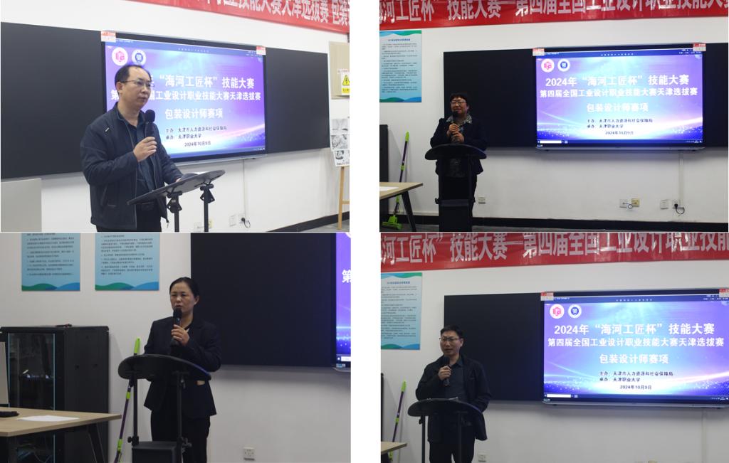 为全面贯彻落实党的二十大和二十届三中全会关于深入实施人才强国战略部署,打造“海河工匠”品牌,充分发挥全国绿色包装行业产教融合共同体(以下简称“共同体”)平台作用,大力弘扬劳模精神、劳动精神、工匠精神,培养更多掌握包装设计知识与技能、发展成为国家包装设计领域的技术技能人才,积极备战第四届全国工业设计职业技能大赛,为发展新质生产力、培养现场工程师和高质量落实“十项行动”提供有力人才支持,2024年10月9日,由天津市人力资源和社会保障局(以下简称“市人社局”)主办、beat365中文唯一官网包装与印刷工程学院承办的2024年“海河工匠杯”技能大赛—第四届全国工业设计职业技能大赛天津选拔赛包装设计师赛项在beat365官网包装与印刷工程学院正式开赛,来自全市包装行业18家企业与院校、共40名选手同台竞技。