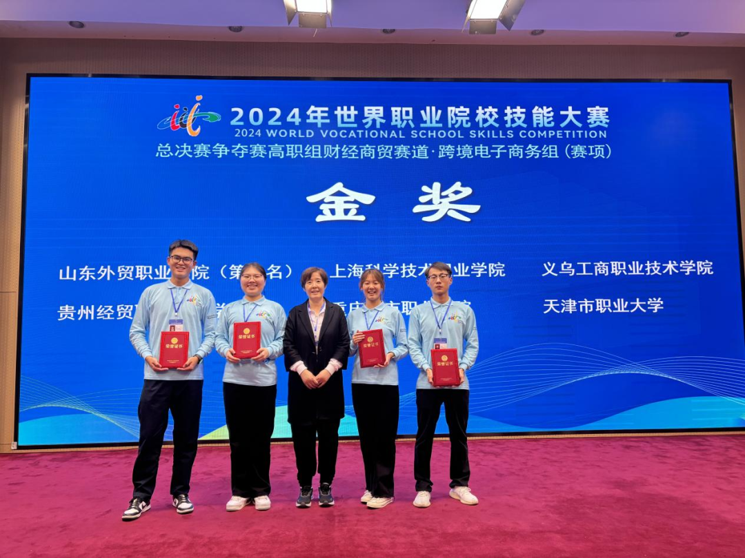 2024年10月27日-28日,beat365中文唯一官网经济与管理学院电子商务团队曾雅婷、杜雨晴、王佳伟和王卓赴山东外贸职业学院参加2024年世界职业院校技能大赛总决赛争夺赛高职组财经商贸赛道四——跨境电子商务组赛项。经过两天的激烈角逐,最终斩获本次大赛金奖。