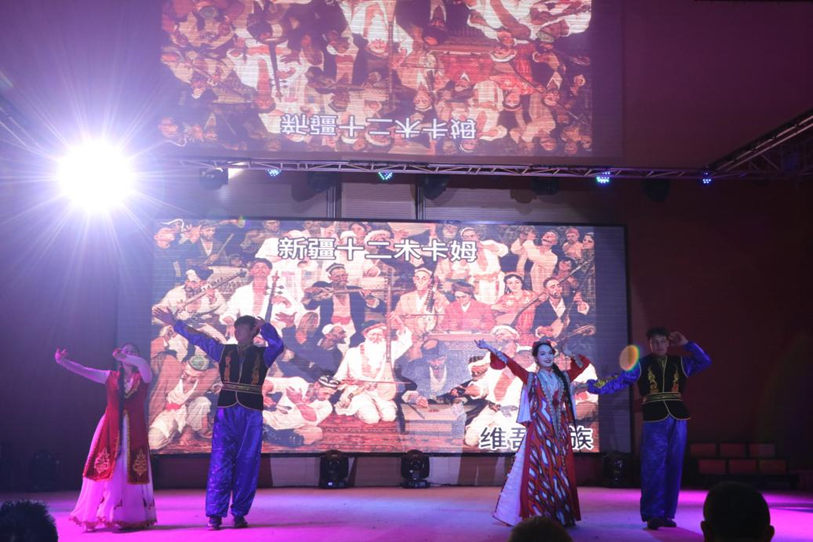 少数民族学生帕提古丽·艾合麦提等4名同学带来的新疆民族舞——《十二木卡姆》拉开了青春团结篇章。