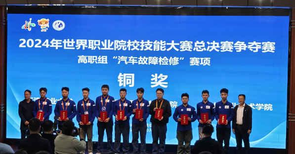 2024 世界职业院校技能大赛的前身乃是全国职业院校技能大赛。本次大赛标志着全国职业院校技能大赛成功晋升为世界级别,在目标任务、竞赛内容和考核方式上均有显著变革。大赛高度重视对参赛者创新能力、交流表达技巧等综合素养的全面考量。本次比赛围绕 “技能水平、职业素养、团队合作、应用价值、创新创意”五个方面对参赛队伍进行综合评价,旨在全面提升职业院校学生的综合素质和能力。不仅使参赛团队的技能掌握程度和创新能力得到显著提高,还极大地锻炼了团队在协作、应急应变以及有效表达等多方面的综合能力。汽车工程学子能够在如此高规格比赛中斩获奖牌,充分彰显了汽车工程学院师生过硬的专业技能和非凡的创新能力。
