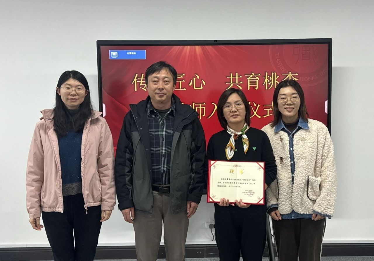 学院副院长郑士成为指导教师代表霍淑珍教授颁发聘书,霍淑珍教授寄语青年新教师,希望新教师们不仅要传授学生理论知识和专业技能,还应做到言传身教、以身作则,努力用自己优秀的道德品格和精神素养去引导学生、影响学生,帮助学生树立正确的世界观、人生观和价值观。新进教师梁小夏老师、韩笑老师发表入职感言,两位新教师表示,要始终做到不忘教书育人初心,争做“四有”好老师,牢记立德树人使命,不断提升教学科研水平,为学院的发展贡献力量。