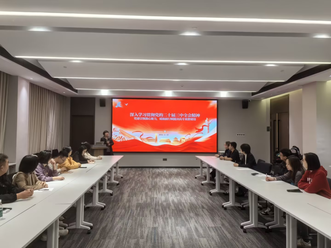 期间,学院党委书记郝晓秀同志作《深入学习贯彻党的二十届三中全会精神--党建引领凝心聚力,砥砺前行赋能双高专业群建设》主题讲座。她讲到要加强思想政治引领,引导学院教师胸怀祖国、服务人民,主动肩负起教育强国、科技报国的历史使命。深入分析学院发展面临问题与挑战,坚定不移用全会精神引领改革创新,认真落实高质量发展的各项任务,不断推进学院事业高水平发展。