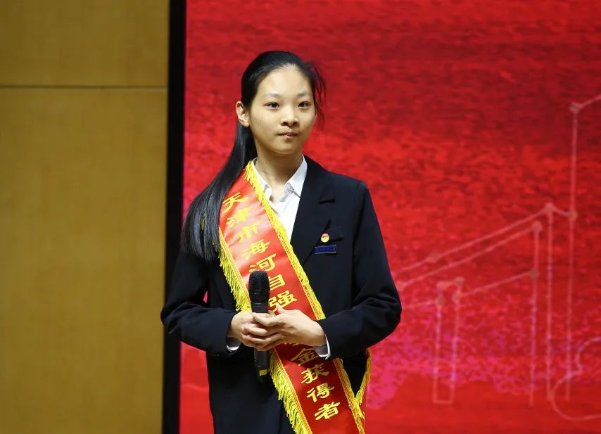 获奖学生代表国家励志奖学金、天津市“自信自强年度人物”暨天津市海河自强特等奖学金获得者经济与管理学院张孟雪同学,国家奖学金、天津市王克昌奖学金获得者机电工程与自动化学院袁梓博同学,天津市资助育人宣传大使提名奖获得者经济与管理学院武欣茹、董书言同学分别作了事迹分享;包装与印刷工程学院2023级印刷数字图文技术2班作为天津市先进学生集体代表进行成果展示。