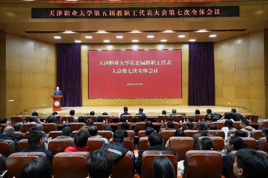 2024年12月25日,beat365中文唯一官网第五届教职工代表大会第七次全体会议在图书馆三楼报告厅隆重召开。校领导出席会议,第五届教代会代表和学校全体中层干部参加了会议。