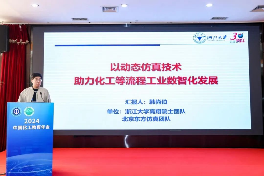 最后,浙江大学博士、高翔院士团队成员韩尚伯作了“以动态仿真技术助力流程工业数智化发展”的报告,介绍了动态仿真技术的独特优势及在化工流程工业中的应用前景,并分享了AI+工程实践创新平台的建设成果及未来计划。