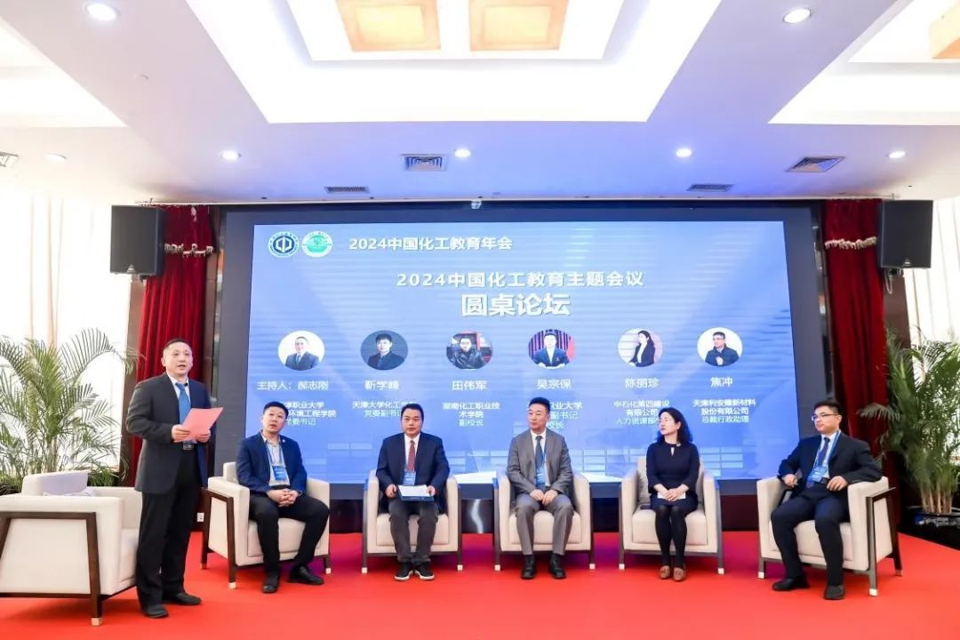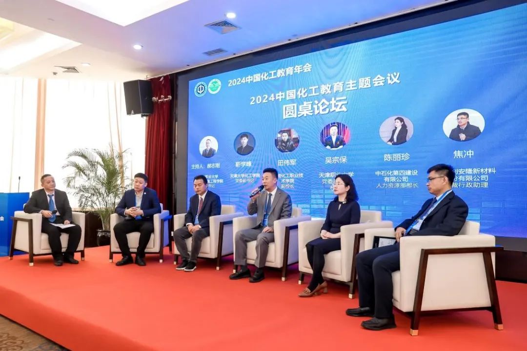 圆桌对话将会议推向了高潮。在beat365中文唯一官网生物与环境工程学院党委书记郝志刚的主持下,beat365中文唯一官网校长吴宗保、天津大学化工学院党委副书记靳学峰、湖南化工职业技术学院副校长田伟军、中石化第四建设有限公司人力资源部部长陈丽珍、天津利安隆新材料股份有限公司总裁行政助理焦冲五位嘉宾,围绕“校企协同育人的成功经验分享”、“产科教深度融合驱动化工职业教育现代化转型”、“高等院校引领化工产业人才培养与技术创新高质量发展新路径”三个话题展开了热烈的讨论。