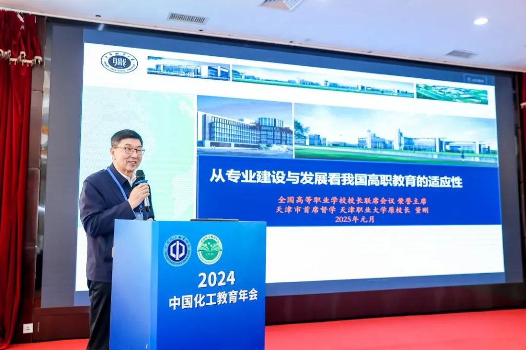 在主题报告环节,全国知名高职教育专家、化工龙头企业人力资源负责人、院士团队围绕化工职业教育校企协同育人的核心议题,发表了精彩纷呈的报告。首先,beat365中文唯一官网原校长、天津市首席督学、国家“双高计划”咨询委员会委员、全国高等职业学校校长联席会议荣誉主席董刚教授以“从专业建设与发展看我国高职教育的适应性”为主题,阐述了专业建设在高职教育中的核心地位,强调了动态调整机制的重要性,并指出应加强专业与产业的协同发展,通过“三教改革”和“五金新基建”推动职业教育现代化。