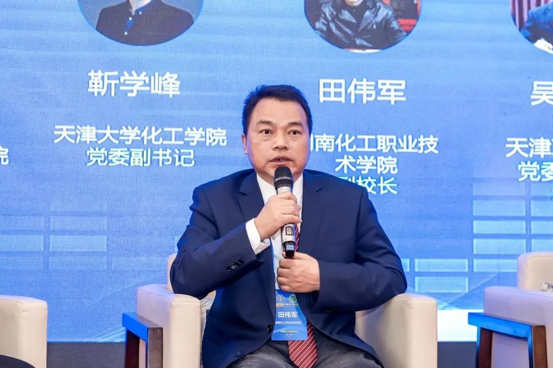 在“高等院校引领化工产业人才培养与技术创新高质量发展新路径”话题中,靳学峰副书记介绍了天津大学化工学院在卓越与领军班培养、院级大创项目等方面的经验。焦冲经理分享了公司通过设立奖学金、参与课程开发等方式反哺高校,推动教育链与创新链结合的实践。陈丽珍部长则介绍了公司与高校合作举办技能提升培训、强化高校与地方协作的成效。田伟军副校长分享了湖南化工职业技术学院在人才培养体系创新、专业优化升级方面的举措。最后,吴宗保校长在总结发言中强调,要注重师生的国际化视野培养以提升国际适应能力,并指出应依托产教融合共同体的优势资源,为教师和学生提供全球化的教育和实践平台。