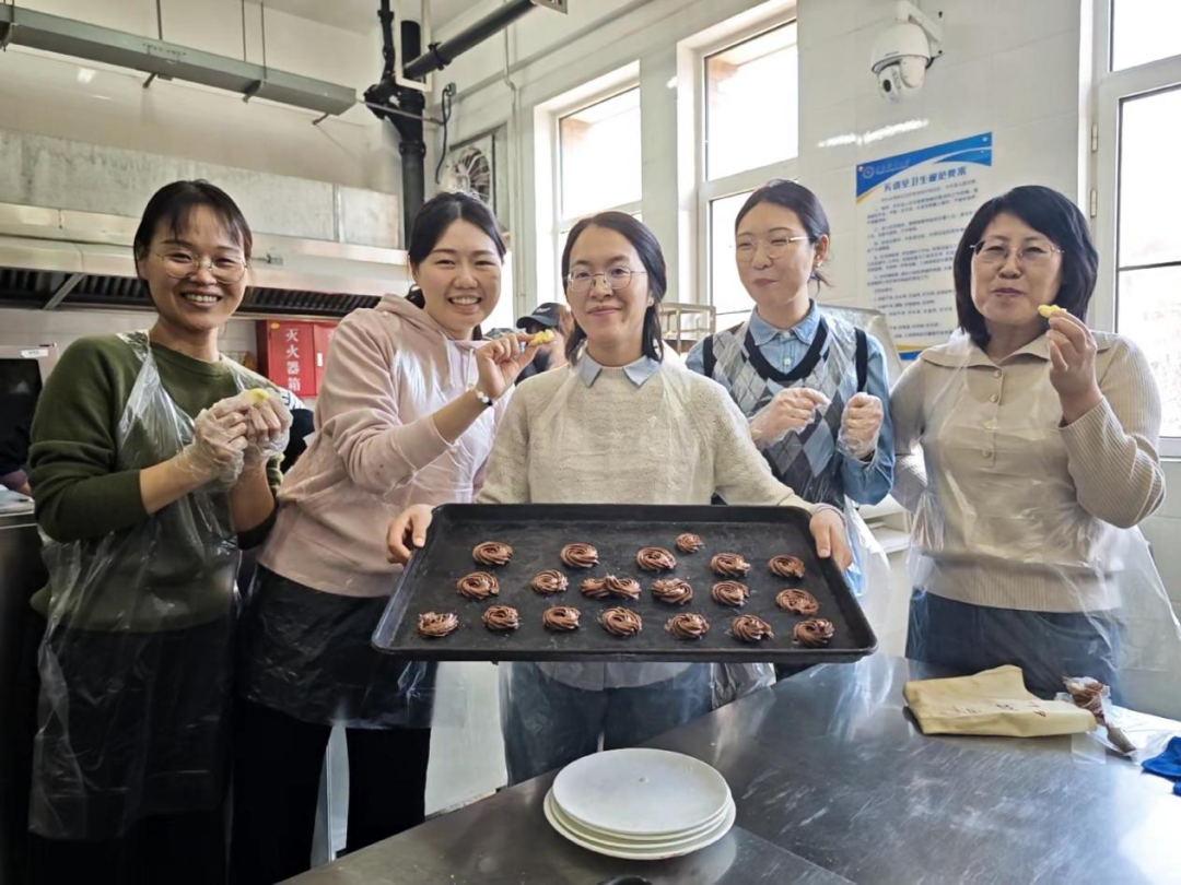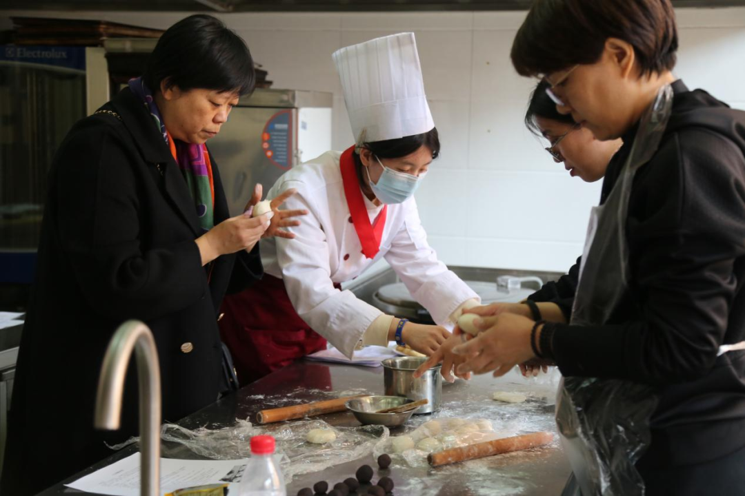 在市招考院领导向女职工致以诚挚节日祝福中正式拉开手工烘焙帷幕。活动现场温馨热闹,在旅游管理学院中西式面点专业教师指导下,迅速分工协作,两组同步开展中式面点和西式面点制作,并在完成一种烘焙食品后交换场地开展第二种烘焙食品制作。首先,中西式面点专业教师开展现场教学,详细讲授烘焙原料的原则、搭配比例及烘焙工具的使用方法等。在掌握基本技能知识后,每3人一小组一案台,跟随专业教师的指导,纷纷化身烘焙能手,在面点制作中,从揉团擀皮到收口滚圆,从黄油打滑、过筛蛋黄到揉面均匀、分份定型,再到最后的入箱烘烤,大家一个步骤接着一个步骤的操作、体验,最后一份份富有美感且香甜的白皮酥、玛格丽特饼干、巧克力饼干纷纷亮相。大家欣赏着自己的劳动成果,脸上洋溢着幸福、快乐的笑容。市招考院老师们开心的说:“平时工作忙,很少有机会静下心来做这些有趣的事。这次活动不仅感受到beat365中文唯一官网技能育人的魅力,体会到烘焙的乐趣,更在充分参与中强化了团队的凝聚力,希望未来有更多的机会走进beat365中文唯一官网,让技能充实我们的日常生活。”