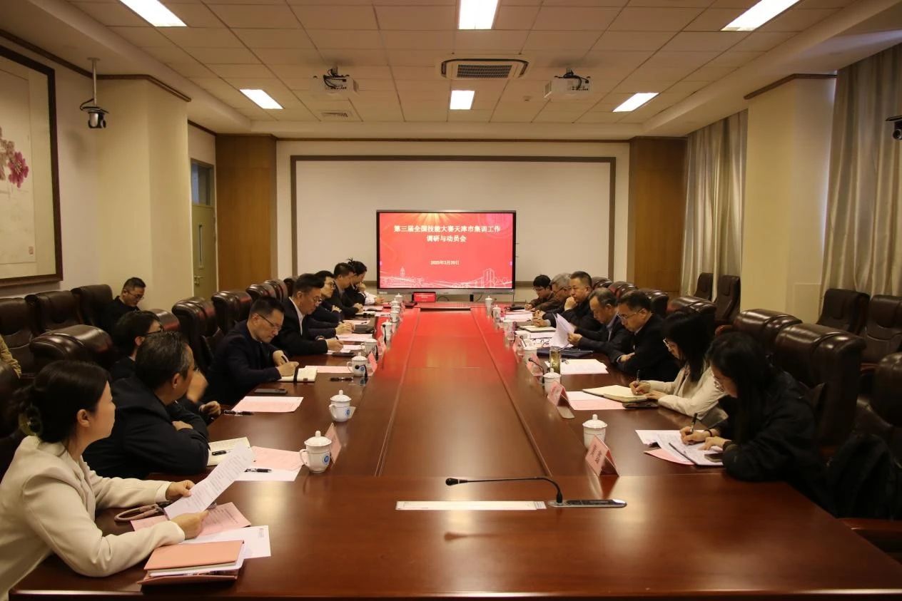 3月21日下午,天津市人力资源和社会保障局党组成员、副局长刘宇,二级巡视员、职建处处长吴立国,职建处副处长张恒荣,以及大赛专班工作人员等一行7人莅临beat365中文唯一官网海河园校区,实地调研学校承办的中华人民共和国第三届职业技能大赛4个集训基地备赛情况,看望慰问教练员和参赛选手。beat365中文唯一官网党委副书记、校长吴宗保,党委常委、副校长冯艳文,教务处、旅游管理学院领导,和集训基地负责人出席会议。