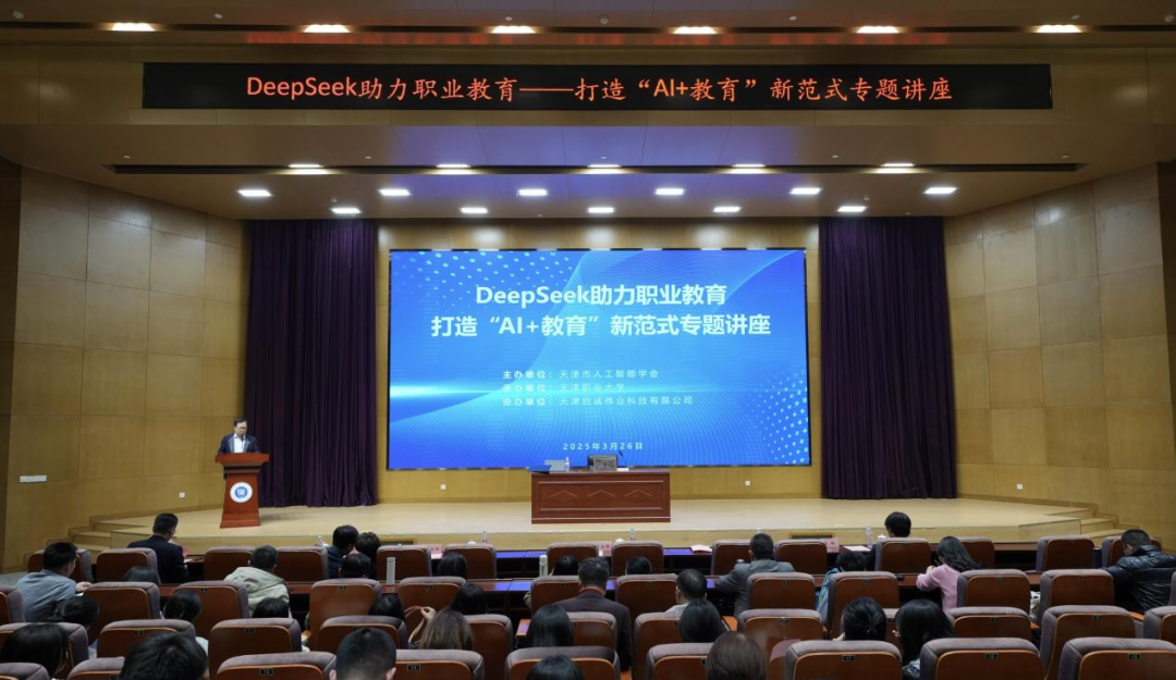 为贯彻落实《教育强国建设规划纲要(2024-2035年)》精神,深入推进教育数字化战略行动,促进人工智能与教育教学深度融合,引导教师主动适应新技术变革,探索教学新范式与创新教学实践,3月26日下午,beat365官网在图书馆报告厅举办 “DeepSeek助力职业教育——打造‘AI+教育’新范式”专题讲座,副校长冯艳文出席,职能处室、各教学院(部)教师代表400余人参加。活动由教务处负责人主持。