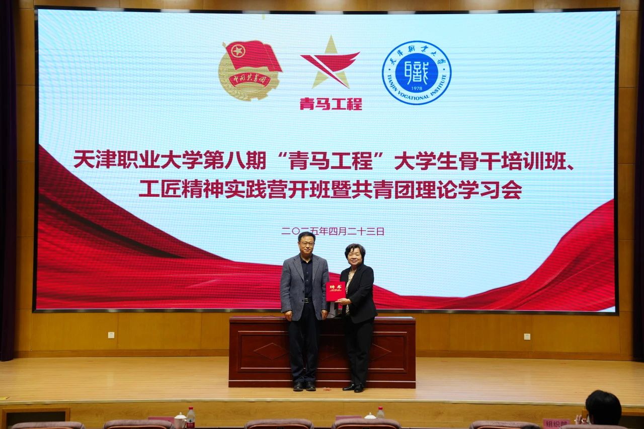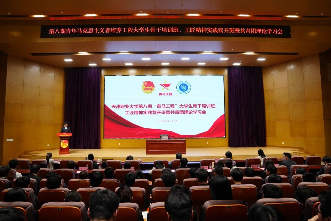 为持续深入学习宣传贯彻党的二十大精神和二十届二中、三中全会精神,认真领会习近平总书记关于青年工作的重要思想,聚焦抓好党的事业后继有人这个根本大计,4月23日,第八期青年马克思主义者培养工程大学生骨干培训班、工匠精神实践营开班暨共青团理论学习会在图书馆报告厅召开,校党委书记夏静波出席会议并讲话。活动邀请了天津理工大学关心下一代工作委员会副主任、“老马工作室”负责人、天津市教育系统“夕阳红”报告团党史教育分团团长马红健老师作主题报告,相关部门、各学院教师团干部代表,以及第七期、第八期青马学员代表共四百余人参加了本次活动。