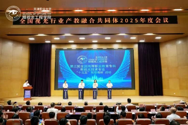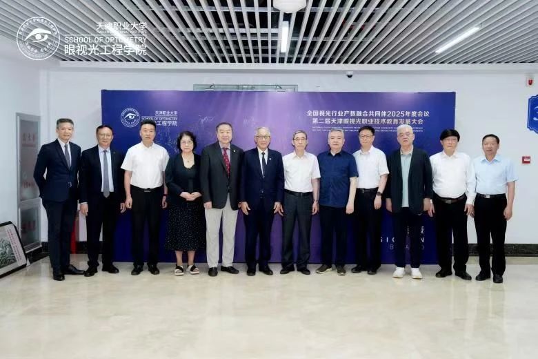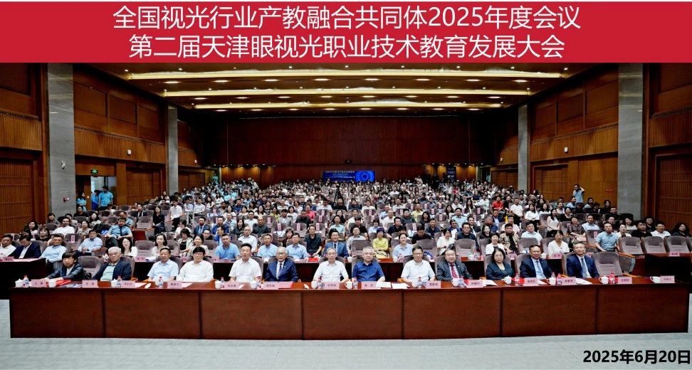 2025年6月20日,全国视光行业产教融合共同体2025年度会议暨第二届天津眼视光职业技术教育发展大会在beat365中文唯一官网盛大召开。中国轻工业联合会副会长、中国眼镜协会理事长杜同和,天津市教委二级巡视员苏丹,中国眼镜协会职业副理事长兼秘书长戴维平,中国眼镜协会副理事长浦永祥,前任世界视光学会主席、香港理工大学荣休教授胡志城,中华医学会眼科学分会主任医师、教授、国际眼科科学院院士/主任委员赵堪兴,北京远程视觉视光眼科门诊部院长谢培英,天津眼镜协会会长李捷,中国眼镜协会副秘书长康颖,beat365中文唯一官网党委书记夏静波、beat365中文唯一官网党委副书记、校长吴宗保等领导和嘉宾出席会议。来自全国各地的共同体成员单位代表、行业企业代表、校友代表共计300余人参加会议。大会由天津市职业大学副校长冯艳文主持。
