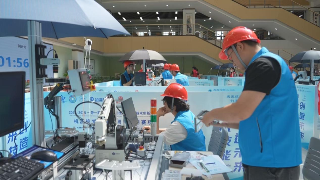 本次大赛由金砖国家工商理事会中方理事会、“一带一路”暨金砖国家技能发展国际联盟等单位主办,吸引了来自中国、俄罗斯等国家的55支参赛队伍同台竞技。赛项聚焦机器视觉系统装调与应用,融合模式识别、精密装调、运动控制及AI技术,覆盖制造业检测、测量、控制等多个领域。