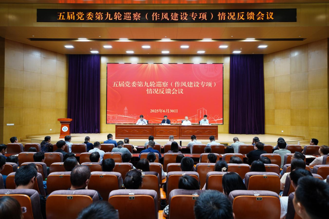 6月30日,学校召开五届党委第九轮巡察(作风建设专项)情况反馈会议,校党委书记、巡察工作领导小组组长夏静波出席并讲话,校党委常委、纪委书记、巡察工作领导小组副组长唐勇,机关各职能部门处科级干部以及五届党委第九轮巡察党委巡察组全体干部共110余人参加会议。