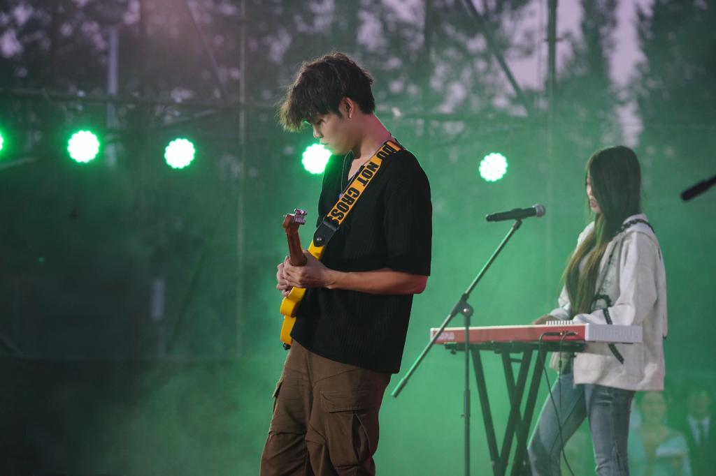 乐声起,身姿扬。校艺术团南寻乐队携开场歌曲《都选C》瞬间点燃全场氛围,也让“向光而行”的晚会主题在开篇便留下深刻印记 —— 青春本就该有奔赴热爱的勇气。