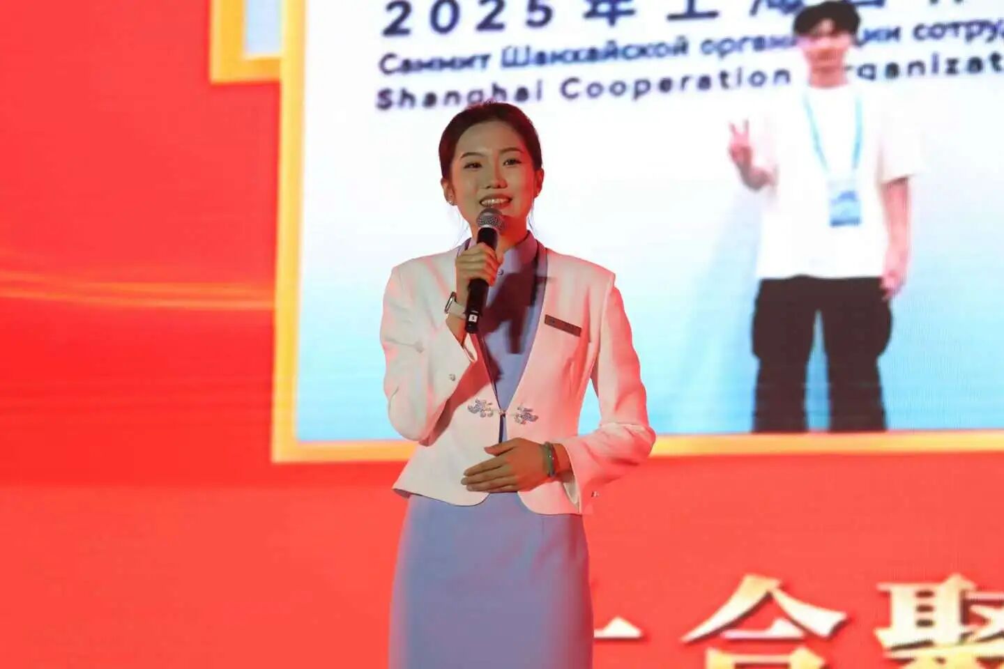 旅游学院上合峰会学生服务团队代表带来的语言类节目《青春津彩,合心共赴》,以情景演绎的形式,通过讲述与表演,分享了团队成员在参与上合峰会服务中的经历。队员们用生动的话语和“场景重现”,展示了天职学子良好的精神风貌、表达了天津作为东道主的热情温暖、诠释了“上合精神”,更体现了天职青年志愿者矢志奉献、为国争光的担当。