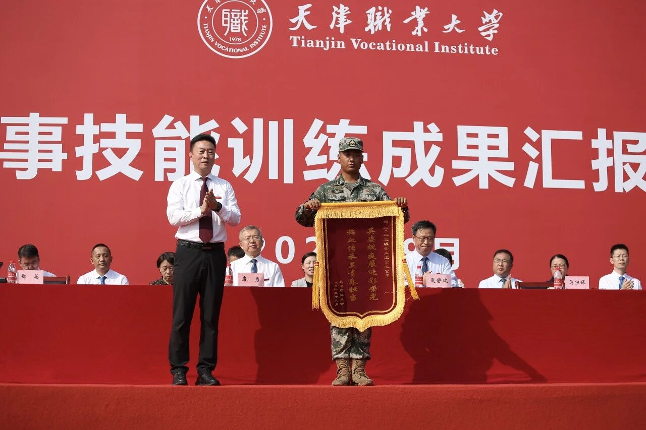 校党委副书记、校长吴宗保同志宣读《beat365中文唯一官网关于2025级学生军训的表彰决定》,向2025级学生军训教官团颁发锦旗,对承担本次军训任务付出辛勤汗水的教官们表示衷心感谢。与会领导为军训中获奖的优秀集体和个人颁发了锦旗和证书。