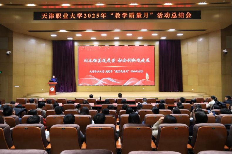 为深入贯彻落实《教育强国建设规划纲要(2024—2035年)》,巩固教育教学改革成果,推动学校“双高建设计划”与职业本科建设高质量发展,学校在北辰校区图书馆报告厅召开2025年“教学质量月”活动总结会。校党委副书记、校长吴宗保,校党委常委、副校长冯艳文出席,相关职能部门负责人及各教学单位负责人、专业负责人、骨干教师代表400余人参加。