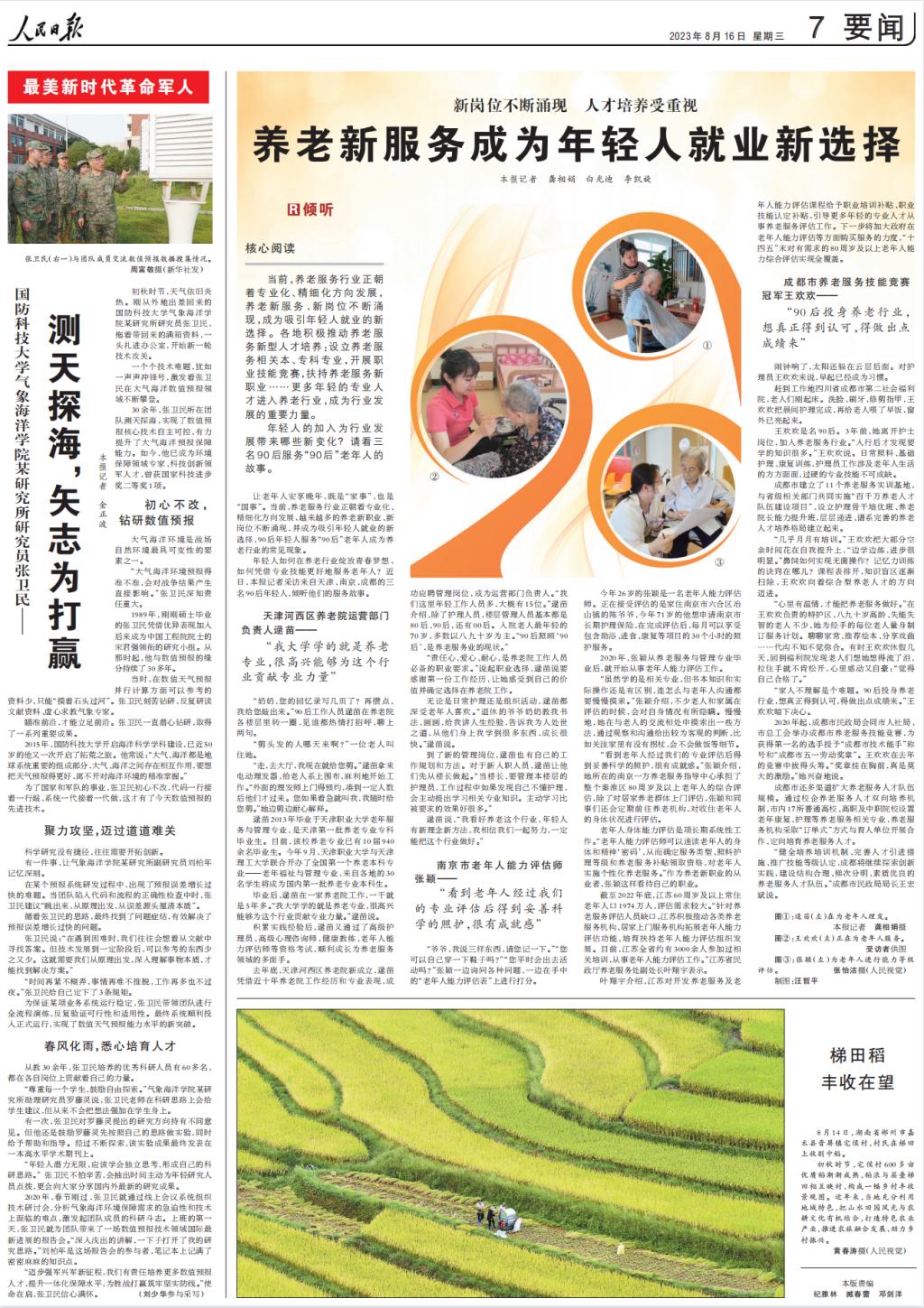 年轻人如何在养老行业绽放青春梦想,如何凭借专业技能更好地服务老年人?近日,本报记者采访来自天津、南京、成都的三名90后年轻人,倾听他们的服务故事。