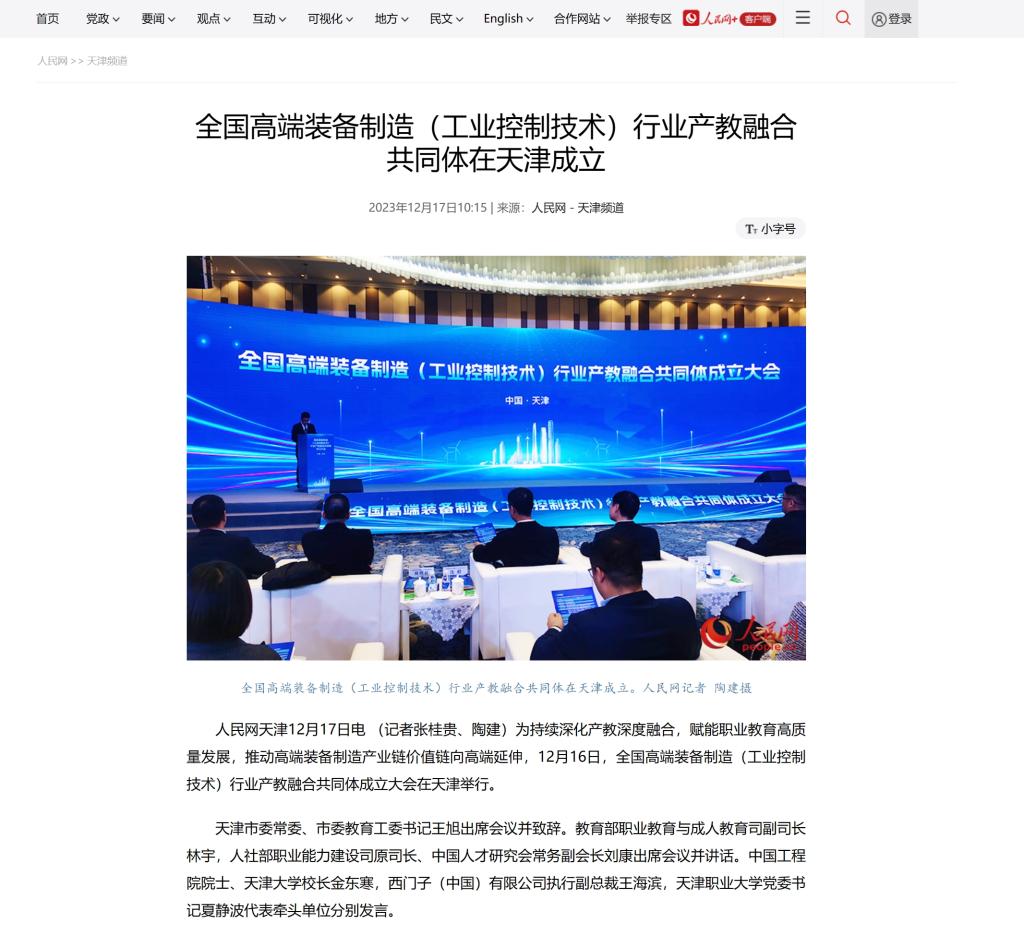 人民网天津12月17日电 (记者张桂贵、陶建)为持续深化产教深度融合,赋能职业教育高质量发展,推动高端装备制造产业链价值链向高端延伸,12月16日,全国高端装备制造(工业控制技术)行业产教融合共同体成立大会在天津举行。