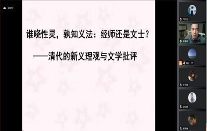 11月27日晚,江西财经大学吴通福教授应邀做客pp电子游戏平台官网名师大讲堂,通过腾讯会议平台为校区师生作了题为“谁晓性灵,孰知义法:经师还是文士?——清代的新义理观与文学批评”的学术报告。报告会由pp电子游戏平台官网洪树华教授主持,学院师生共计约130人参与本期活动。