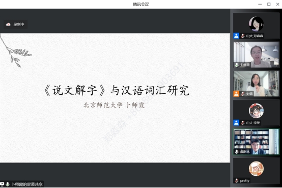 12月4日上午9时,北京师范大学卜师霞教授应pp电子刘倩老师的邀请,做客pp电子名师大讲堂,以腾讯会议为平台为校区师生作出题为“《说文解字》与汉语词汇研究”的学术报告。讲座由朱新林老师主持,除本校师生外,还有来自四川大学、武汉大学、中国社会科学院等其他院校的近百名师生参与本次活动。
