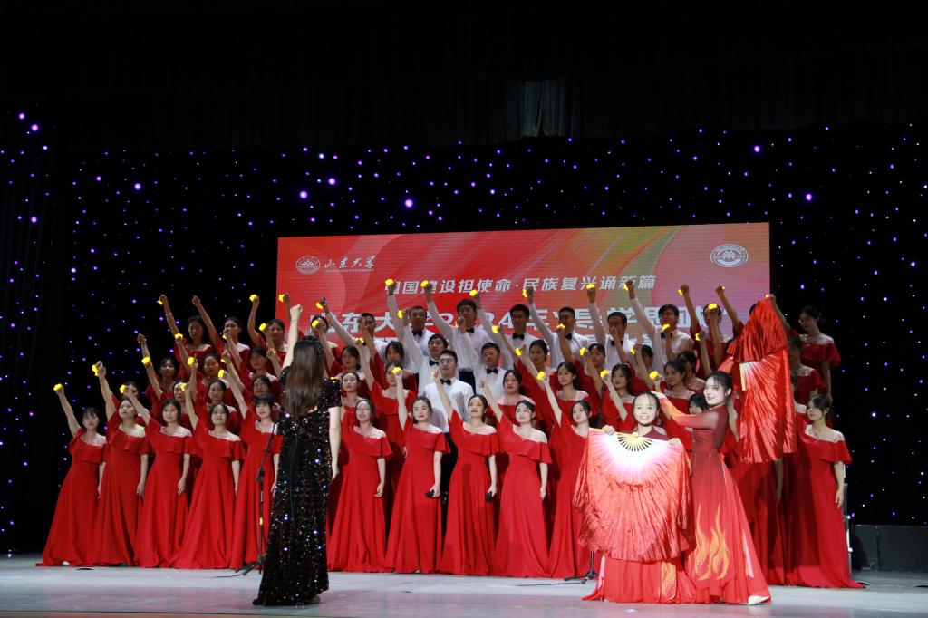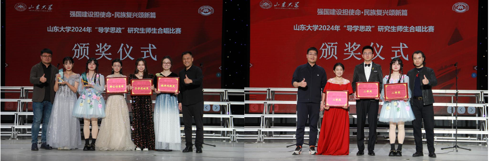 11月2日晚,pp电子游戏平台官网2024年“导学思政”研究生师生合唱比赛(威海赛区)于艺术学院音乐厅正式举行。pp电子游戏平台官网以一曲《走向复兴》精彩亮相,并以优秀表现获得二等奖及导学思政奖。参与此次合唱的人员有常务副院长周新顺、党委副书记周玉宏、副院长尹海良等10名教师代表以及50名研究生代表。