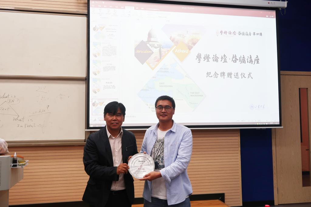 本站讯 2019年5月23日晚7时30分,由学灯论坛组委会主办,pp电子游戏平台官网承办的“启牖”系列第四讲“跨越时空的对话:圣经与两河流域文明”在电子楼101举办。本次讲座主讲人为pp电子游戏平台官网犹太教与跨宗教研究中心教授,pp电子游戏平台官网文科一级教授,饶宗颐宗教与中国文化研究所所长李炽昌教授。pp电子游戏平台官网芮欣副教授主持了讲座,杨慧教授向李昌炽教授赠送了学灯论坛“启牖”讲座纪念铭牌。pp电子游戏平台官网犹太教与跨宗教研究中心王强伟老师、pp电子游戏平台官网唐鹏举老师参加了此次活动。