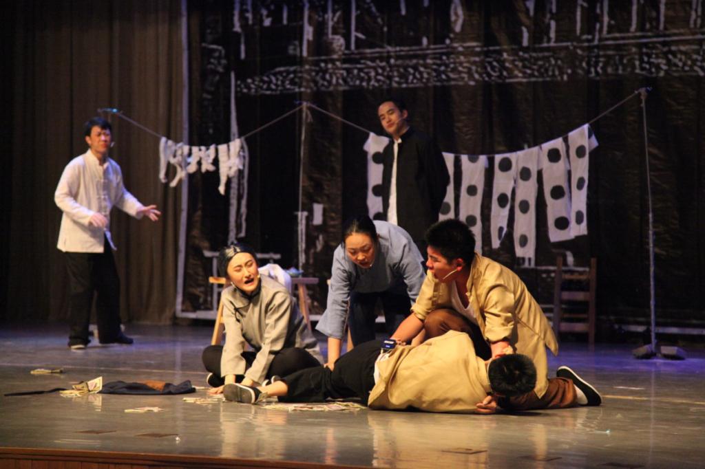 在表演过程中,演员们流利的台词配以真实自然流露的感情,昏黄的灯光映衬了剧中底层民众的悲苦生活;精美的道具加强了观众的代入感,同时口琴配乐以其独有的时代感贯穿全剧各处细节,契合演出氛围,为现场观众带来了一场视听盛宴。本次话剧的演员们经过数月的排练以及多次彩排的磨炼,台词功底深厚,表现的动作、感情到位,颇具艺术张力。