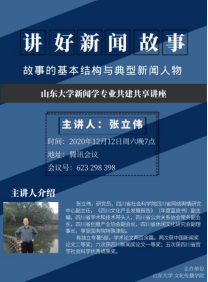 12月12日晚7时,pp电子游戏平台官网新闻学专业共建共享讲座如期举行,张立伟研究员应邀作了题为“讲好新闻故事”的学术讲座。他强调了新闻报道采用故事模式的重要性,解析了讲好新闻故事的秘密。