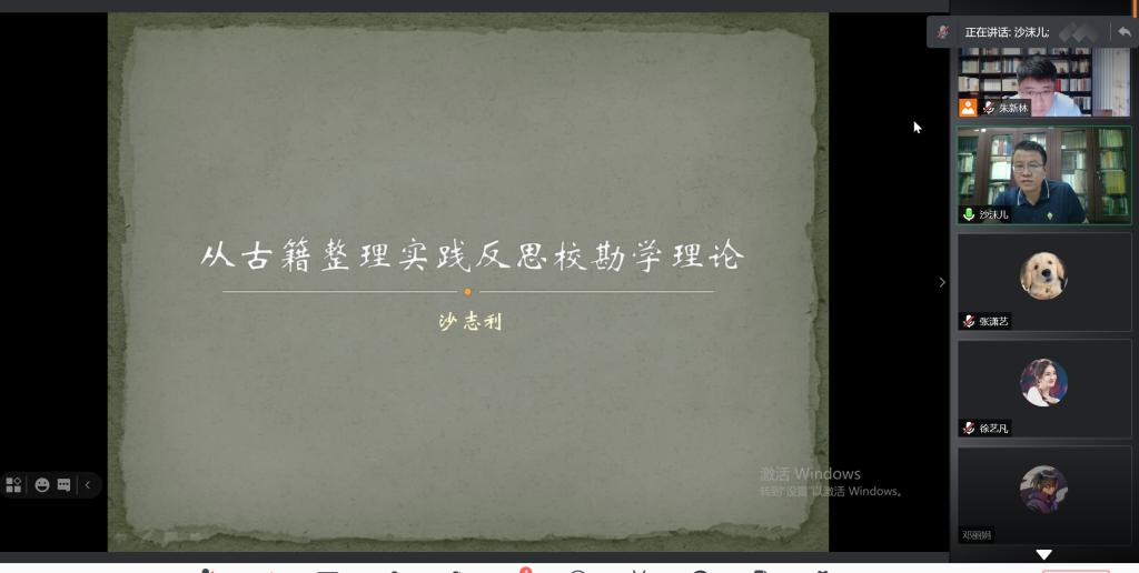 5月28晚,pp电子游戏平台官网承办的“百廿山大,学术报国”迎校庆百场学术报告的第六场活动如期举行,北京大学《儒藏》编纂与研究中心副研究员沙志利先生应邀为我校师生作了题为“从古籍整理实践反思校勘学理论”的学术报告,报告由pp电子游戏平台官网的朱新林老师主持,与会师生们通过“腾讯会议”线上平台聆听了这场报告。
